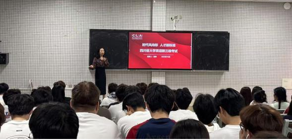 10月15日下午,培训与社会服务中心牵头在成都校区阶梯教室、遂宁校区2教115阶梯教室组织了四川省大学英语新三级考试宣讲活动,宣讲由英语教师粱欣、张婷主讲,各二级学院学生参加。